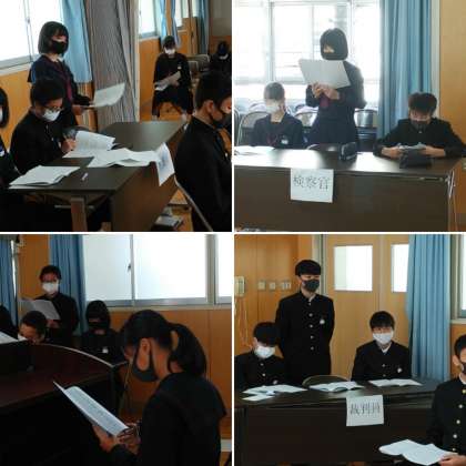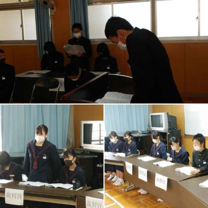 現在、3年生の社会科の授業では、「模擬裁判」を行い、体験しています。