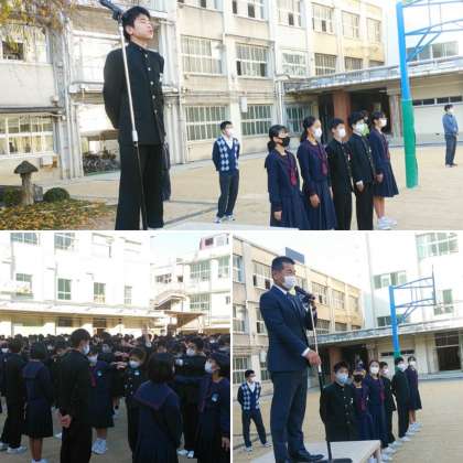 週明けの定例の「全校集会」ですが、昨日は3年生の実力テストのため、今朝に行いました。