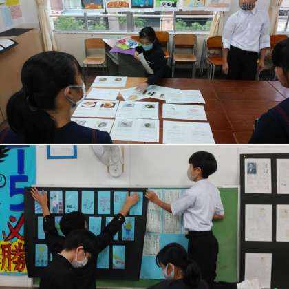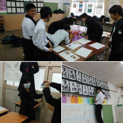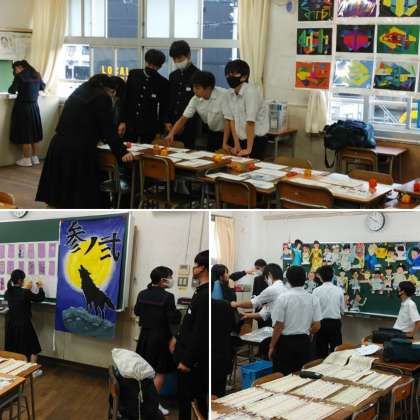 各クラスでは、展示物を配置し、みんな仲良く教室をデコっていました。