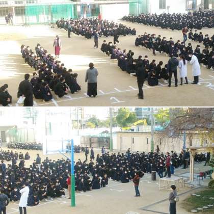 6月、各クラスでは、パワーポイントを用いてシミュレーションはしていましたが、実際には行うことができなかった、地震を想定した「避難訓練」と「集団下校班」の確認を行いました。