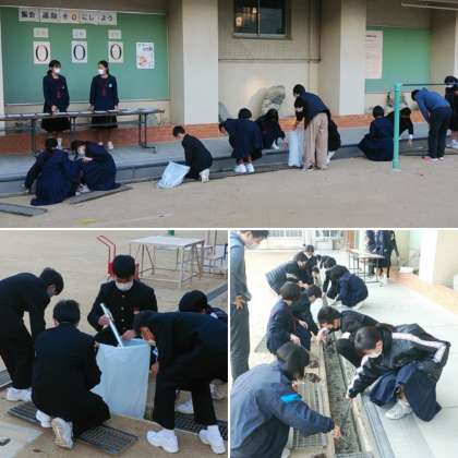 今年は、隣の南堀江公園グラウンドが改修工事のため、校舎内清掃を行います。たくさんの堀中生徒のみなさんが参加し、清掃活動に力を入れてくれました!