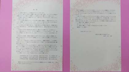 卒業生のみなさんにむけて、PTA会長さまから、ご祝辞を頂戴いたしました。