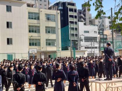週の初めは「全校集会」が行われます。集会遅刻「ゼロ」を目指しましょう!