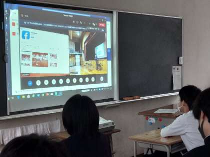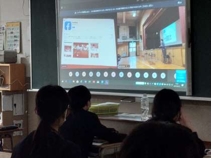 会場内を撮影し、1,3年生は、Teamsを使って、各教室でオンラインで視聴学習をしました。