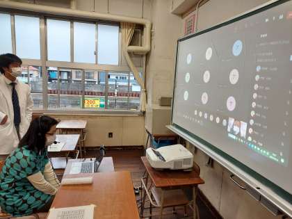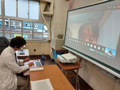 本日も朝の学活のような感じで、2,3年生のクラスでTeams「接続テスト」を行いました。