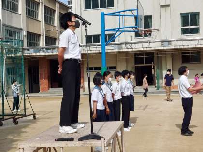 校長先生からご講話があり、生徒指導の先生からは、先週末に期末テストを終えましたが、このあとの授業も大切にして、1学期をいい形で終了してほしいとの話がありました。