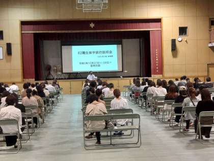 10月27日(水)、28(木)の1泊2日の行程で、信州・白馬方面への修学旅行にむけて、保護者さまに対して説明会を行いました。
