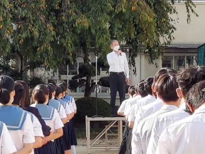 緊急事態宣言もあけ、ひさかたぶりの「全校集会」を行いました。