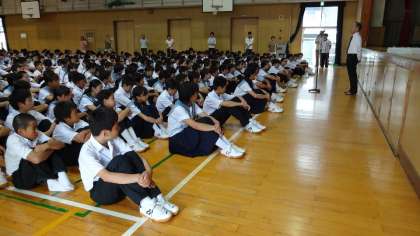 始業式の中で、夏休み中の部活動の表彰をおこないました。