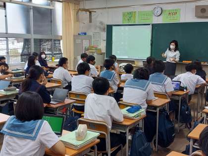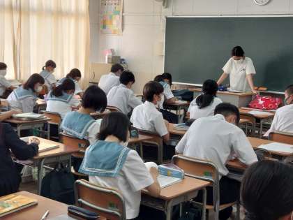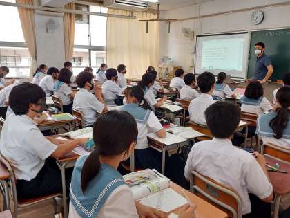2年3組の国語、2年6組の数学、2年2組の社会の授業の様子です。