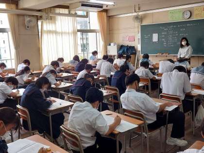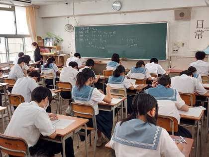 2学期中間テストも2日目を迎えました。今日は、英語と国語と実技教科の筆記試験を行いました。