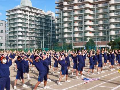 校長先生のお話のあと、ラジオ体操から競技がスタートしました。メリハリのついた動きが美しく映えました。