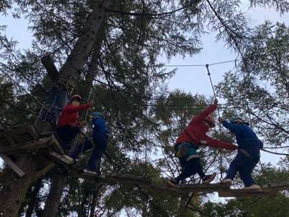 ハイエレメントでは、スリル満点で男女とも「キャー」という声が響いています。