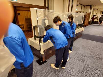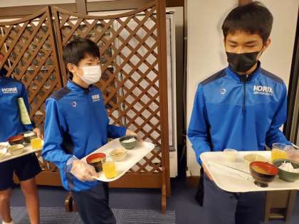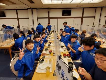 夕食はバイキング形式です。信州名物のりんごジュースやそばも味わうことができました。