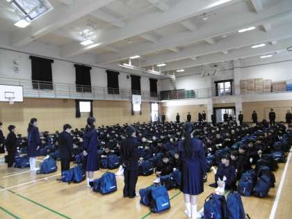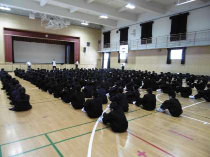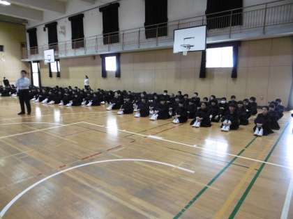 明日5月10日(日)から1年生は、貝塚市にある大阪府少年自然の家に一泊移住に行きます。金曜日は体育館にて、最終の事前指導として、目的や行程についての再確認等が行われていました。また、時間を守ってすばやく集合できるように、いろんなパターンでの集合整列練習を実施し、きびきびとした行動ができていました。さすが堀江中学校1年生です。