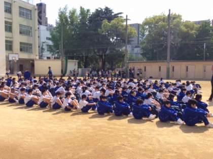 晴天のもと、たくさんの保護者のお見送りの中、一年生は貝塚方面での一泊移住に出発しました。