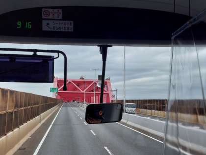 港大橋を渡り、大阪市を出ます。バス内では音楽を聴きながら楽しく過ごしています。