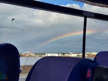 泉大津からは日がさしてきました。虹も姿を表し、気持ちが盛り上がります。