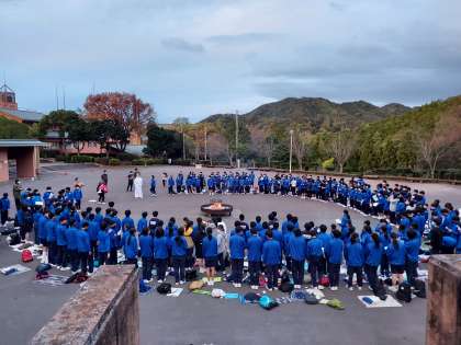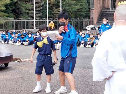 その後は堀江中学校クイズで盛り上がり、最後はみんなでカントリーロードを合唱して、キャンプファイヤーを終えました。(17時)