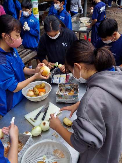 野外炊飯がスタートしました。グループの仲間と協力して、おいしいカレーライスをつくろう!