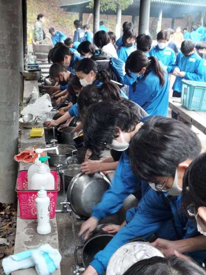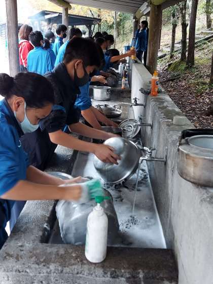 洗い物、後片付けをして施設の方々のチェックに合格ののち、退館式、出発となります。