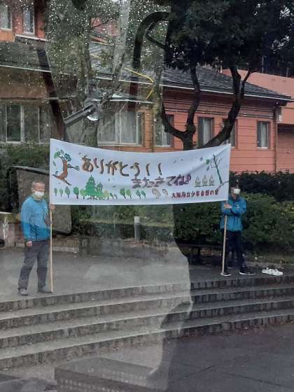府立少年自然の家を出発しました。堀江中学校へ向かいます。(14時30分)