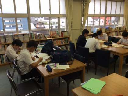 元気アップ事業の一環として、テスト前学習会を行いました。来週18日(月)、19日(火)に予定されている中間テストに向けて、今週11日(月)〜15日(金)の5日間、15:30〜17:00で自主学習会を図書室で行っています。1年生が代休の日、台風接近で大雨の12日(火)も多いときには座席がないほどの盛況ぶりでした。生徒の皆さん、今日を含めて、あと3日間、学習会に参加してください。