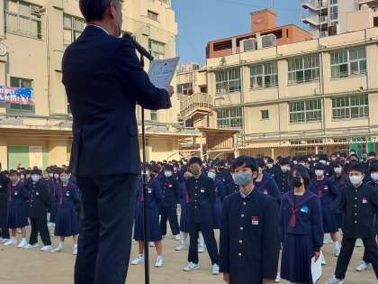昨日は3年生の実力テストを実施したことに伴い、本日全校集会を行いました。