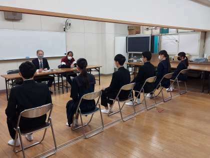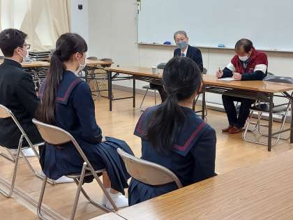 本日も3年生は、校長先生からの面接指導を受けています。緊張した面持ちで、一生懸命回答していました。