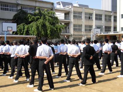 18日(月)、19日(火)が中間テストだったので、本日全校集会。朝から、ぐんぐん気温が上がり、熱中症に注意!校長先生からは、松下幸之助さんが「叱ってくれる人を大切にしなさい」と言われたということ、耳の痛いことを言ってくれる人を大切にし、集団生活に必要なルールの中で自分の才能をどのように伸ばすかというお話がありました。また、生徒主事の北村先生からは、夏服への更衣準備期間半ばになり、もう一度服装をチェックしよう、自転車の安全な乗り方などのお話がありました。