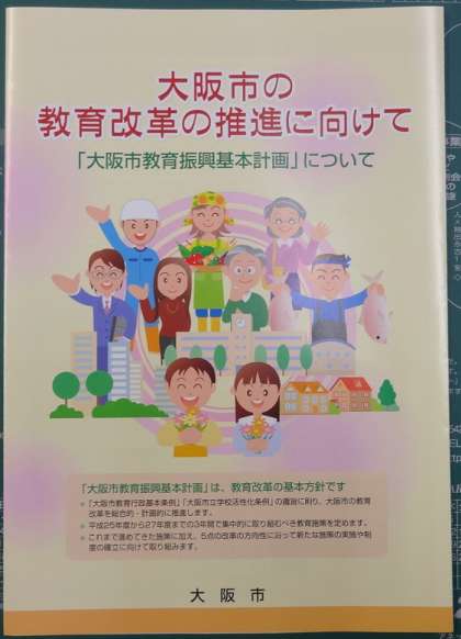 「大阪市教育振興基本計画」のリーフレットが届きましたので。本日配布いたします。ご家庭でご一読ください。