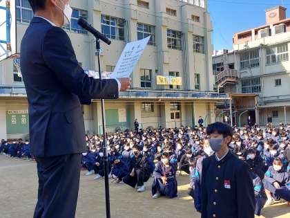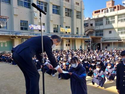 3年生の生徒が「絵画のコンクール」で入選を受けました。そして卓球部は先日の大阪市第3支部の大会で、男子団体3位、女子団体3位を獲得しました。