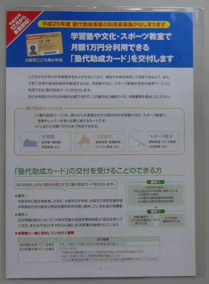 「塾代助成事業」の利用者周知リーフレットが届きましたので本日配布します。