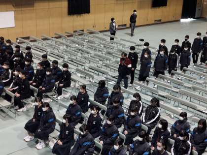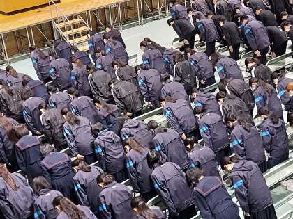 金曜日の卒業式にむけて、今日から3年生は式練習を行っています。