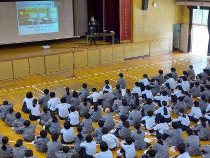 1年生は体育館で、2,3年生は各教室へtemsで配信して、今年度も講師の先生をお招きして、「情報モラル教室」を開催しました。
