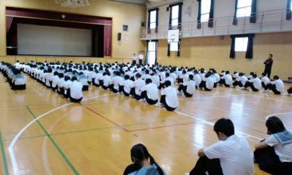金曜日は、3年生の学年集会です。今日は、進路主事の先生から、高校のオープンスクールなどの進路に関する情報を連絡していただきました。