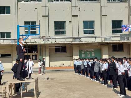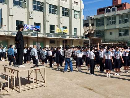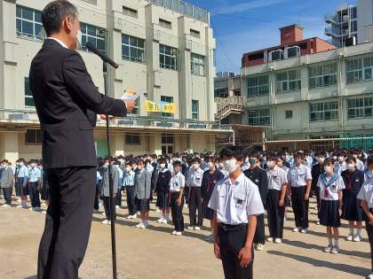 全校集会を行いました。校長先生からは暑くなり標準服の着こなしやマスクの着脱にふれてご講話をいただきました。