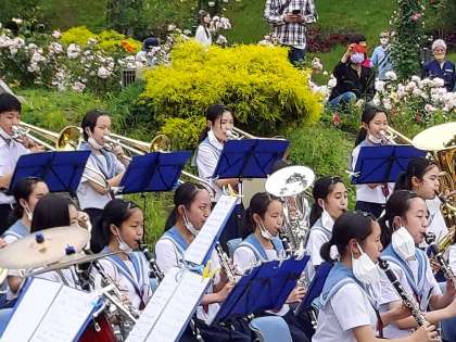 昨年度は制限をかいくぐった秋に開催された「バラ園コンサート」ですが、今年度はいつものこの時期となりました。