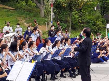 昨年度マーチングで全国ナンバーワンになった本校吹奏楽部が地域貢献のひとつとして参加いたしました。