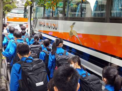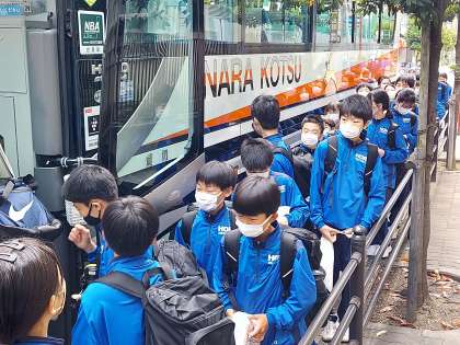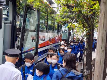 バスドライバーさんにあいさつしてバス乗車。滋賀県までヨロシクお願いします。