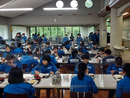 「来たときよりも美しく」みんなで使ったお部屋の清掃して、野外炊飯の準備です。