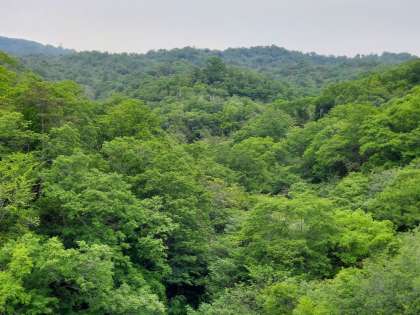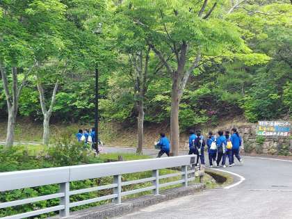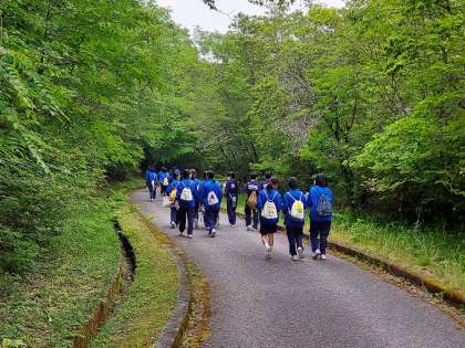 野外炊事場を目指して移動中。自然でみどりがいっぱいです。