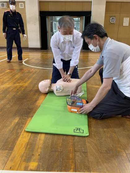 中間テスト後、午後から西区の消防署員さんらをお招きして、「救命救急講習会」を実施し、いざというときの備えとして、多くの教職員が参加しました。