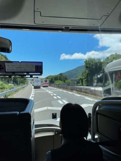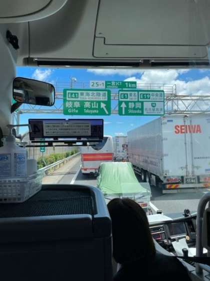 3年生は、昼食場所のパーキングエリア近くまで来ています。やや渋滞にかかっているようです。(11:30ごろ)
