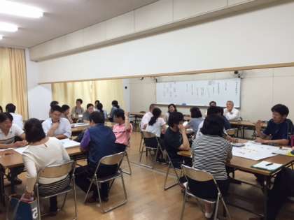 参観授業の後は先生全員で、授業の反省点や改善する点、良い授業を行うためのポイントや方法など、熱心な研究協議会がなされ、グループ発表が行われました。また、教育センターからの講師の先生のアドバイスもいただきました。