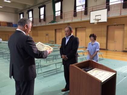 進路説明会に引き続き、PTA予算総会も開催され、今年度のPTA行事と予算について決議し、その後、前年度PTA役員の方々への感謝状を贈呈いたしました。PTA会員の皆様方には、PTA行事に積極的にご参加くださいますようお願いいたします。