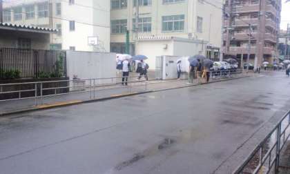 期末試験最終日。雨の登校になりました。先生方だけの出迎えです。試験が済めば部活も再開。明日は、土曜授業です。防災や防犯について学習します。
