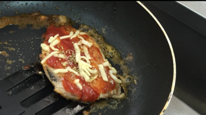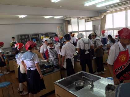 2年生は家庭科の調理実習で、イワシのピザ風を作りました。給食のおかずにプラスαしていただきます。