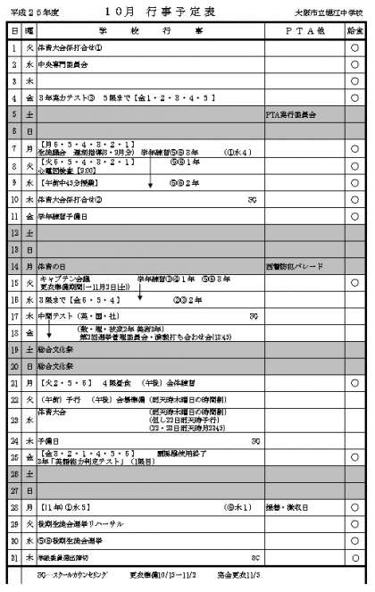 10月23日、24日は、「体育大会」及び「体育大会予備日」の関係で「給食」はありませんが、お弁当は必要です。