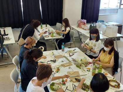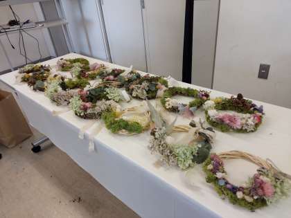 PTA成人教育の活動で、本日午前中に「プリザーブド フラワー リース講習会」を開催しました。